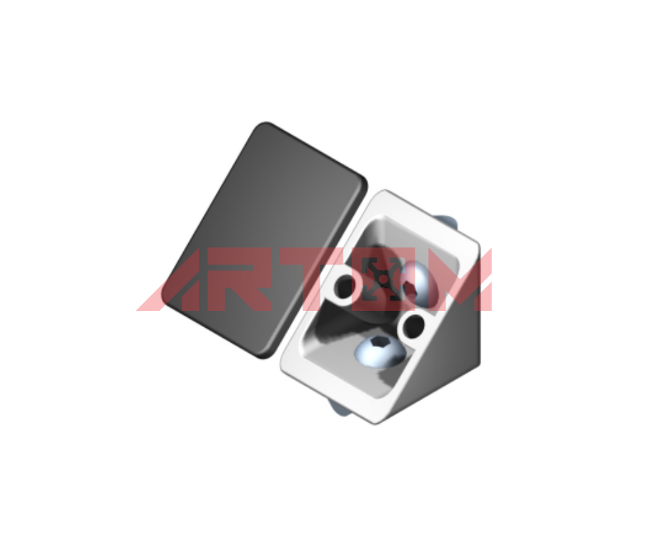 Kątownik 40×40 łączy profil aluminiowy prostopadle, pod kątem 90 stopni.