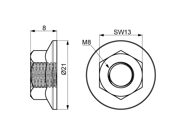 Nakrętka kołnierzowa z gwintem M8.