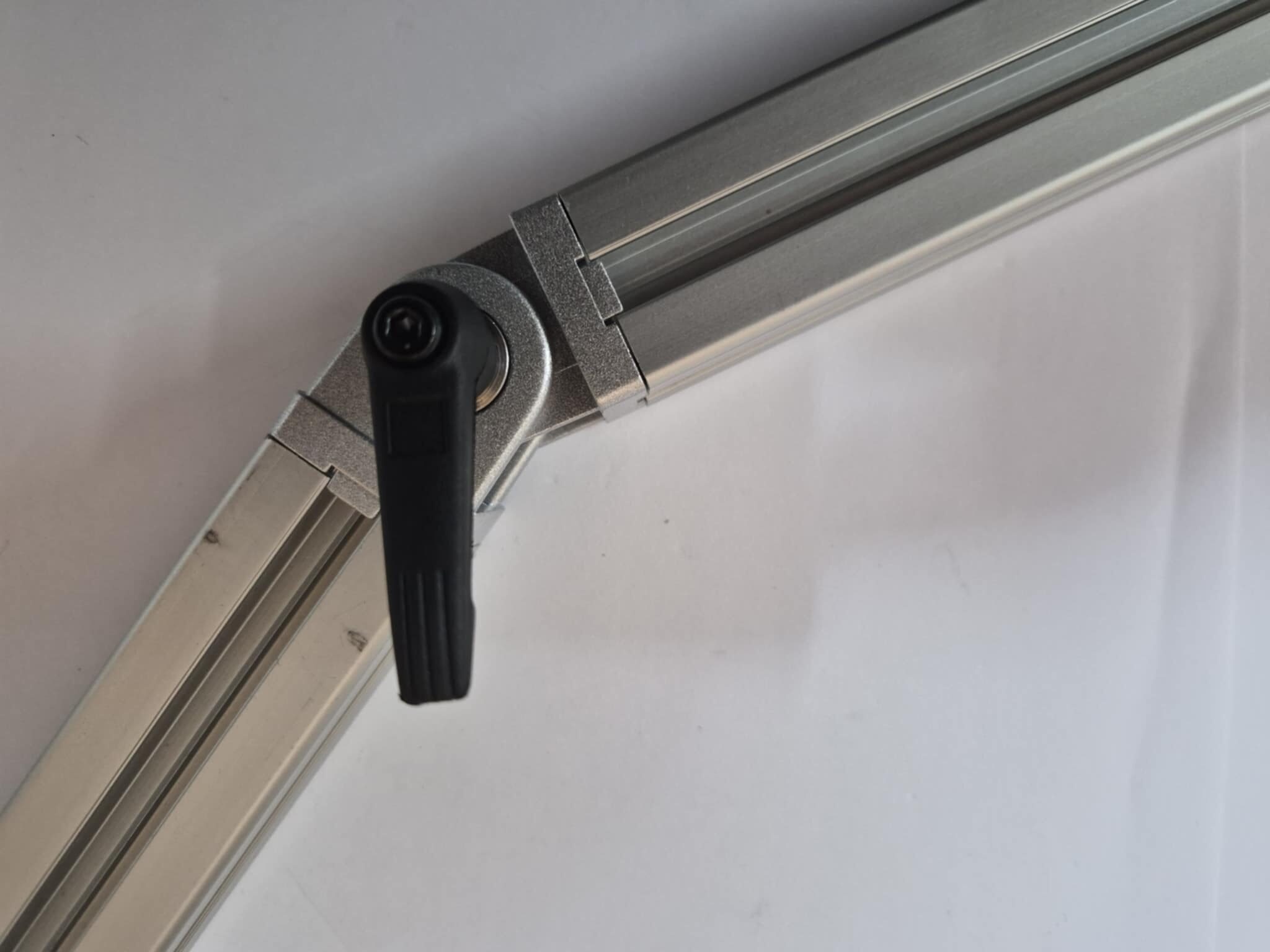 Przegub obrotowy o wymiarach 30×30 mm służy do ruchomych i nieruchomych połączeń dwóch profili aluminiowych pod dowolnym kątem.